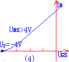 我们根据这个特性关系可得出它的特性曲线如图(4)所示。它描述了栅、源之间电压对漏极电流的控制作用。